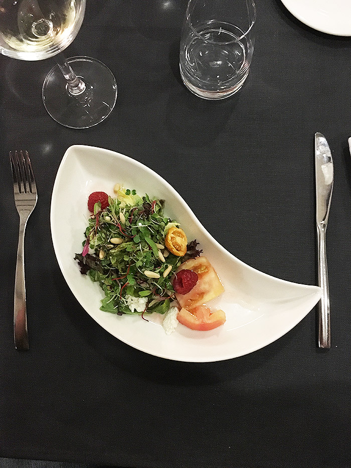 De entrada, ya nos advirtieron que la labor del chef Ramón Ribas consiste básicamente en aunar en un mismo plato sus tres grandes pasiones: la salud, el diseño y la alimentación. Y eso se notó desde un buen principio cuando el primer plato que se sirvió (después de una pequeña cata de aceites y panes) fue una ensalada donde lo «micro» de los brotes y las lechugas sólo era una excusa para hacer del sabor un «macro» difícil de encontrar en un plato cuando de verde hablamos. Una buena ración canalones aterrizó en la mesa para probar que la tradición gastronómica local puede abordarse también desde el punto de vista healthy sin perder de vista la explosión de sabor que supone. Y a este canalón le siguieron algunas improvisaciones sobre la carta para adaptarse a la temporada: tanto carne como pescado no sólo fueron servidos en un punto perfecto, sino casados siempre con otros ingredientes pensados para realzar el sabor del producto base. Por ultimo, un postre a base de castañas que sirvió de broche de oro para una experiencia gastronómica que el sumiller supo maridar con una selección de vinos al nivel de semejantes manjares.