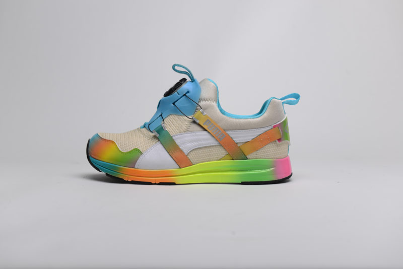 Sabíamos que Puma le estaba dando caña este año al rollo lifestyle para ponerse a la cabeza de firmas de zapatillas molonas, pero la verdad es que no pensábamos que TANTA. Y es que en el transcurso del día de ayer nos cayó la bomba del nuevo fichaje de Solange como nueva directora creativa de la firma de cara al año que viene. La pequeña Knowles (que parece que todavía no se decide a lanzar su esperadisísimo primer disco, a ver si espabila) se ha encargado de customizar un modelo aplicándole ese rollo étnico multicolor que ha convertido en su sello personal, y ha escogido para ello su modelo favorito ever: la Puma Disc Blaze, una zapatilla de espíritu totalmente retrospecter y noventero que salió al mercado por primera vez en 1992 y que contaba con el mérito de ser la primera zapatilla de running sin cordones (contaba con un mecanismo que ajustaba los cordones internamente favoreciendo así el confort y la efectividad). En su momento, la Disc Blaze se convirtió en un hito de las carreras y pronto dio el salto a la calle y a los pies de los sneakerfreakers más exigentes.