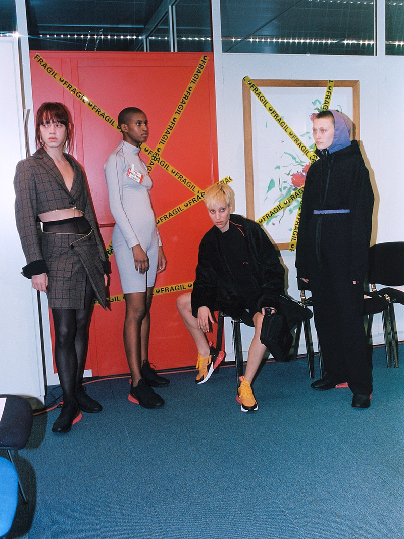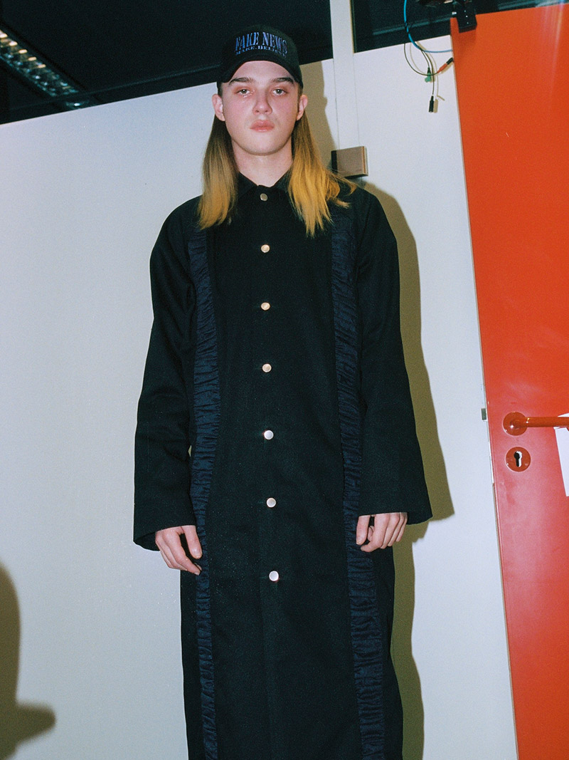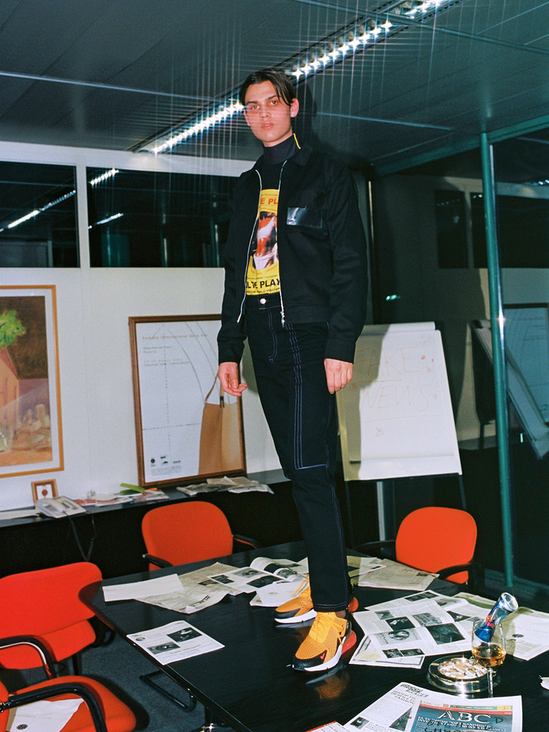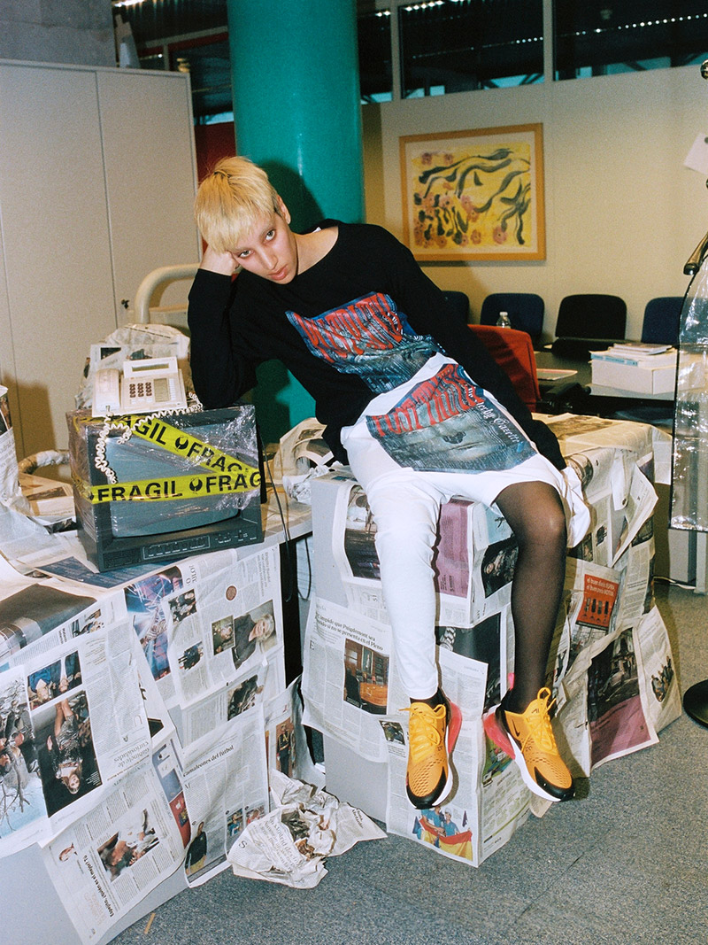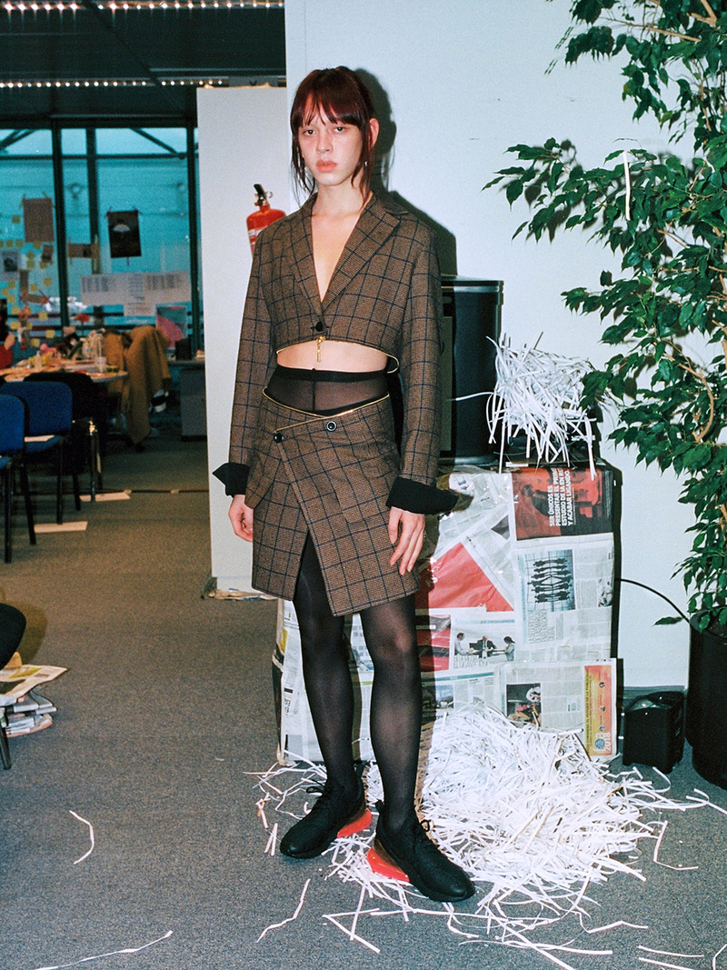 Lo jodido del caso es que la colección de Shoop para la próxima temporada de otoño / invierno 2017-18 tendría que tocarnos profundamente la moral… Al fin y al cabo, lo que está haciendo la firma de Miriam Sanz y Yohei Oki es precisamente coger ese officecore que tan en boga esta desde que Demna Gvasalia le diera cañita brava al frente de Balenciaga y transportarlo directamente a la redacción de cualquier periodicucho del tres al cuarto en la que se fraguan todas esas «Fake News» que están desestabilizando el orden informativo clásico.