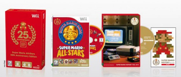 Pese a que la celebración del 25 aniversario del fontanero más famoso del mundo es algo que, a priori, debería festejarse con igual intensidad tanto en España como en el resto del mundo, hay que reconocer que no las teníamos todas con nosotros. Tras la confirmación de que los japoneses brindarían por el evento con la copa de champán en una mano y “Super Mario All Stars 25th Anniversary” para Wii en la otra, nada parecía indicar que llegaría a nuestras tierras este tremendo pack recopilatorio que incluye en un único disco “Super Mario Bros.”, “Super Mario Bros. 2”, “Super Mario Bros. 3” y “Super Mario Bros: The Lost Levels”, acompañados de un folleto exclusivo con la historia de la saga y de otro CD con la música de todos, pero realmente todos los “Super Mario” de los últimos 25 años. Pero ya podemos respirar tranquilos: se acaba de anunciar que este pack definitivo llegará a España el próximo 3 de diciembre (precisamente el mismo día que también llegará a las tiendas otro clásico para Wii: “Donkey Kong Country Returns”).