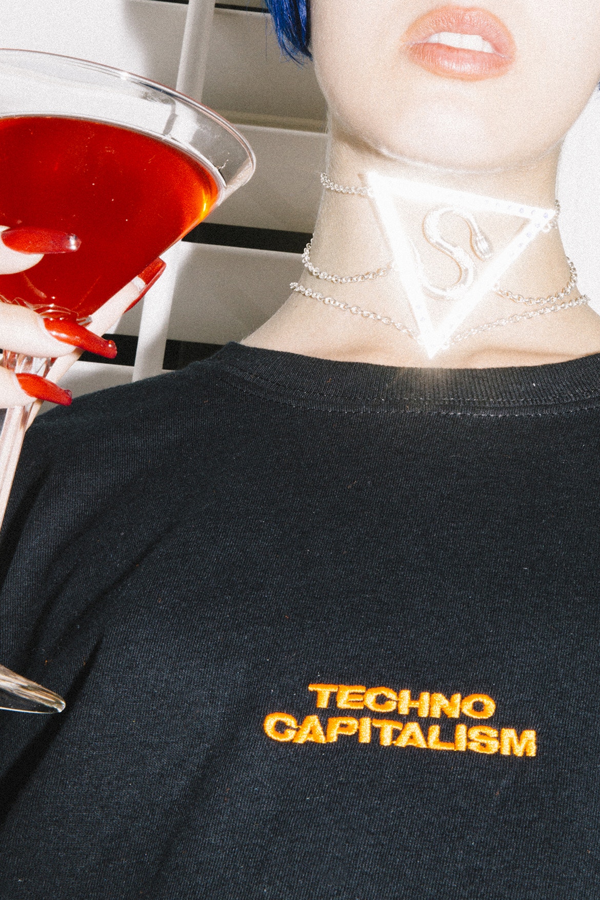 Y vamos que si lo es. Si no nos crees, lo mejor que puedes hacer es dirigirte directamente a la online store de Sita Abellán (tienes un link al final de este texto) y comprobar de qué pie calza… Al fin y al cabo, es un momento más que ideal para hacer tal cosa, ya que la ídola acaba de darle un meneo a su propia línea de merchan con todo un conjunto de nuevas prendas entre las que destacan aquellas en las que brilla un concepto tan jodidamente elocuente como el Techno Capitalism. ¿Hace falta que te lo expliquemos?