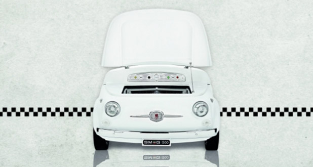 Está claro que una de las tendencias actuales del diseño es la de sacara a los objetos de sus parámetros habituales para sorprender a todo aquel que espere que una mesa tiene que tener forma de mesa, que una silla tiene que tener forma de silla… o que una nevera tiene que tener forma de nevera, como es el caso que nos ocupa. La cuestión es que SMEG están especializados en buscarle las cosquillas a su muy icónico diseño: en los últimos tiempos nos han sorprendido con locuras como aquella edición en la que forraron su nevera con tela de vaquero o las múltiples variaciones como la mini-SMEG ideal para oficinas o para salones donde la prioridad sea tener la bebida bien cerquita. La última locura de la marca italiana ha sido asociarse ni más ni menos que a Fiat, con quienes ya compartieron una de sus primeras colaboraciones en los años 50, poco después de iniciar su andadura como marca imprescindible para todo aquel que quiera un frigorífico con un diseño fetén.
