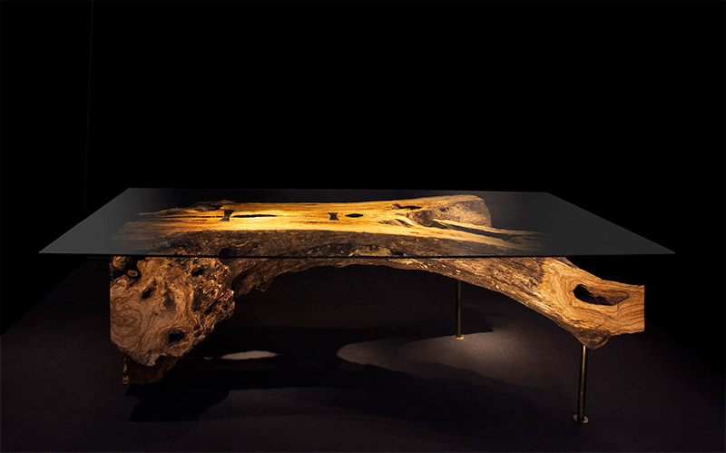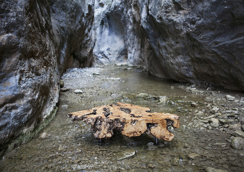 Pero que nadie se asuste: Piqué no se ha dedicado a cortar olivos centenarios a diestro y siniestro, ni mucho menos. Lo que ha hecho el artista es darle una nueva dimensión a los árboles muertos, reutilizando y rehabilitando sus maderas para conseguir unas piezas a medio camino entre el mobiliario y el arte, entre el diseño y la escultura. «Soka» está poblada por muebles que seducen a la vista pero que, sobre todo, apelan a nuestra alma mediterránea: reutilizando la madera de estos olivos centenarios no sólo establece una sintonía ancestral con nuestro espíritu y nuestras raíces, sino que también completa el ciclo vital del árbol de forma magistral.