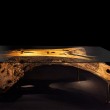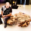 La Oleoteca La Chinata de Barcelona acoge la exposición «Soka», en la que el diseñador Jordi Piqué utiliza madera de olivos centenarios para hacer muebles.