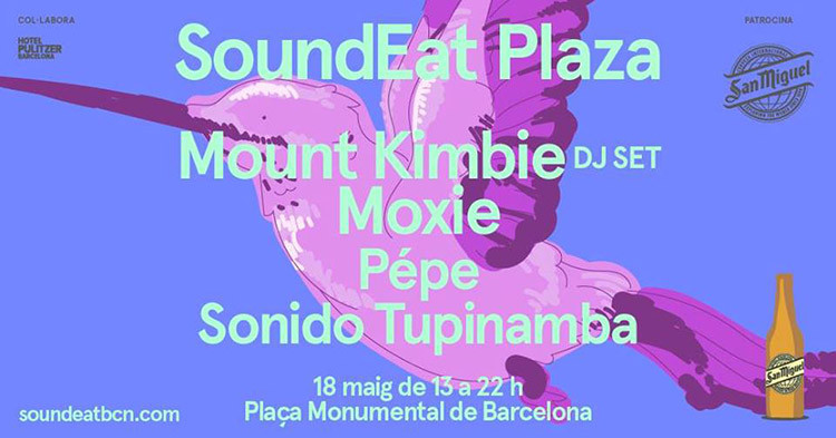 Por ahora, ya hay confirmado otro SoundEat! Plaza (así es como han bautizado estos nuevos SoundEat! en la Monumental). Se celebrará el próximo sábado 18 de mayo y tiene un cartel tremendo que vuelve a hacernos sospechar que van a ser un buen puñado de horas (la mayor parte de ellas a la luz del solecito pre-estival, lo que siempre es un plus) bailando y gozando y cancaneando en las mejores compañías. Las compañías de tus colegas, claro. Pero sobre todo las buenísimas compañías de Mount Kimbie, Moxie, Pépe y Sonido Tupinamba.