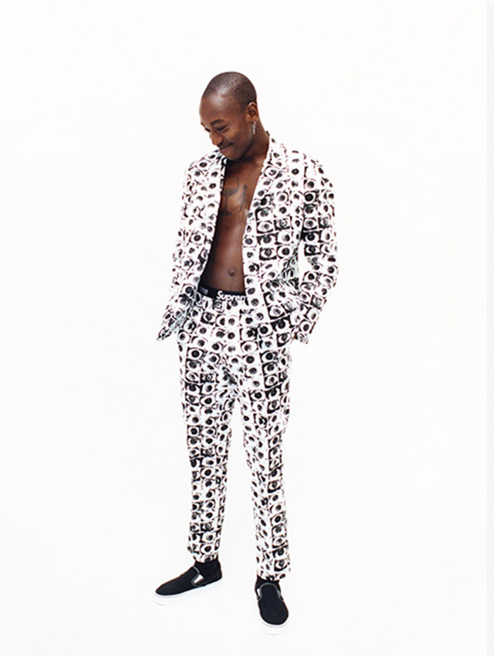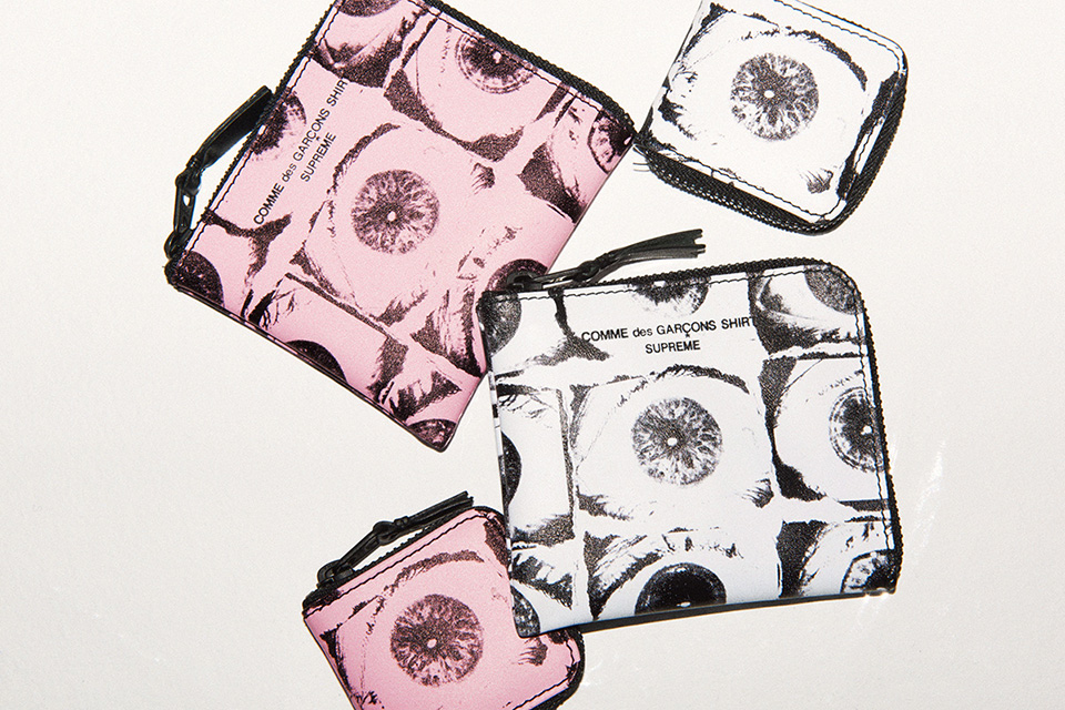 Pero, ojo, porque esta no es una colección de camisas, ni mucho menos. En esta colaboración hay espacio para camisetas, hoodies, complementos, trajes de dos piezas y algunas maravillas muy fascinantes como el chubasquero en negro brillante o una revisión de las Nike Air Force 1 Low. En la mayor parte de estas piezas brilla el verdadero protagonista de la colección: un estampado de ojos inspirado en los anuncios que el artista conceptual Stephen J Shanabrook realizó en 2010 para Comme des Garçons Shirt. La colaboración se pone a la venta el próximo 13 de abril… Y ya sabes lo que va a ocurrir: sold out en tres, dos, uno. [Más información en la web de Supreme y en la de Comme des Garçons]