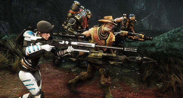 [dropcap]1.[/dropcap] ¡ESTO ES LA PUTA GUERRA! Esta es la sensación que queda tras chocar por primera vez con «Evolve«: ¡la guerra! Y no lo digo de forma baladí ni mucho menos. ¿Qué se le presupone a una guerra? Múltiples emociones de acojone diverso, sudores fríos, subidones de testosterona, intentos de conservar la sangre congelada para establecer tácticas que te mantengan con vida… Todo esto se encuentra en «Evolve«, un juego que parte de una prerrogativa muy sencilla: aquí hay cuatro cazadores y una bestia, y absolutamente todos están controlados por diferentes jugadores. En mi caso, lo probé con otros cuatro compañeros en una misma sala, y eso siempre confiere un plus de emoción… Pero hay que entender que en cuanto «Evolve» llegue al multijugador online, con lo que tiene de cabroncetes ocultos detrás de la anonimidad internetil, esto puede petar lo más grande y convertirse, directamente, en un standard como «Call of Duty» (y lo siento mucho por «Call of Duty«, pero este multijugador es mucho más inteligente y menos azaroso que el suyo).