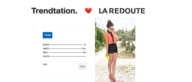 Con todo, era cuestión de tiempo que estas páginas dieran el salto definitivo e integraran el proceso de «clichar» el outfit y comprarlo directamente, sin tener que linkar hacia páginas externas o perderse en el marasmo de webs coreanas que suelen ser las proveedoras de la mayoría de prendas que vemos en estas sites extrangeras. Trendtation ha sido la primera en dar este paso y ayer anunciaba su partnership con La Redoute, web especialista en moda y decoración con gran presencia en Francia y con muchas ganas de conquistar los armarios españoles. Ahora, cuando los usuarios cuelguen sus outfits y las prendas que los compongan formen parte del increíble catálogo de La Redoute (que contiene más de 200 marcas), se podrá ir directamente a la web de compra para hacerse con lo deseado… Nunca hacerse con los lookazos más envidados de la red ha sido más fácil.
