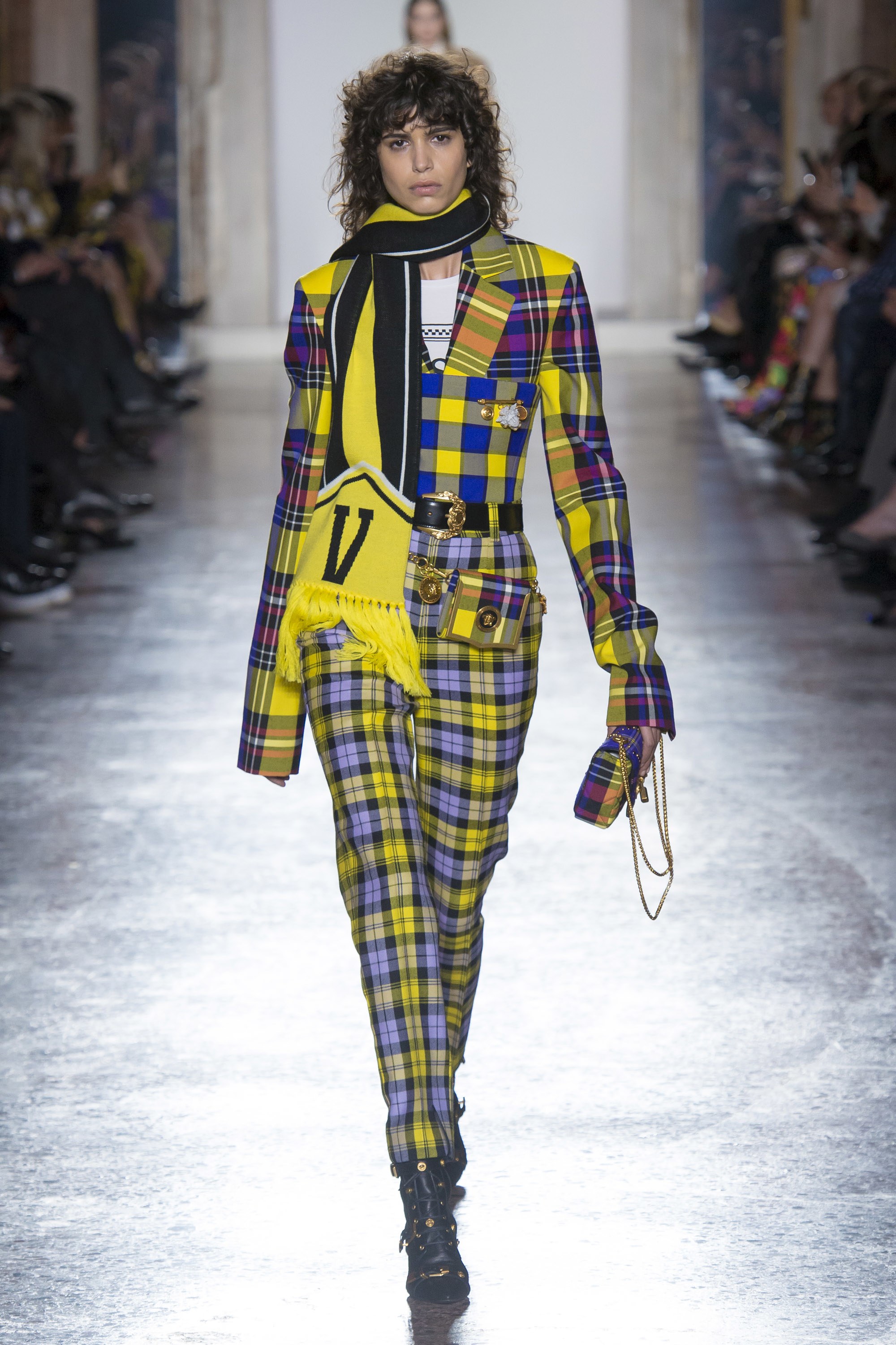Por ahí dicen que la influencia básica en esta colección es «Clueless«… Y, bueno, la verdad es que es fácil entender por qué alguien pensaría algo así. Pero lo cierto es que, además, se intuye en esta colección de Versace una elocuente apropiación del tartán escocés e incluso de sus siluetas y joyería para llevarlo al terreno del paninaro italiano. Ahí están también el punk británico y, claro, Vivienne Westwood. Pero todas estas referencias tan presentes en el primer tramo de la colección acaban fundiéndose en lo que viene después, que viene a representar toda la diversidad posible de los diferentes «Clans of Versace«.