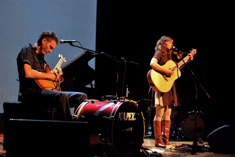 De la misma manera que habían procedido sus dos colegas, Lisa Hannigan emergió de la oscuridad del backstage sin compañía para abrir su participación con la susurrante “Little Bird”, cuya melodía vocal progresiva hilvanó con la también candorosa “Passenger”, mandolina en mano y flanqueada en la guitarra por John Smith y en la batería por Ross Turner. A pesar de su procedencia irlandesa (su voz rasgada le delataba), la cantautora supo igualmente transitar con facilidad de los tramos puramente norteamericanos de “Passenger” (autoeditado, 2011), como el folk de cuna de “O Sleep” (con Smith dándole réplica en los coros), a los más épicos (“A Sail”) y profundos (“Flowers”) de sangre gaélica, en los que se entregó sin condiciones. Por su ánimo, su empatía y simpatía con el poblado graderío, sus cantos a la amistad y sus arrebatos de timidez, recibió el mayor número de aplausos de la velada. La final y briosa “Knots” rompía con energía el embelesamiento general para recordar que la celebración a la belleza musical hecha mujer del Voces Femeninas 2012 se acercaba a su fin…